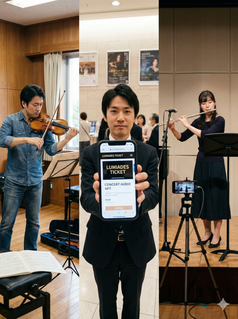 その一瞬の響きを、ファンが一生持ちつづけられる「資産」に変える。 ご提案するのは、「演奏そのものをNFT」にするという、新しい芸術の残し方です。